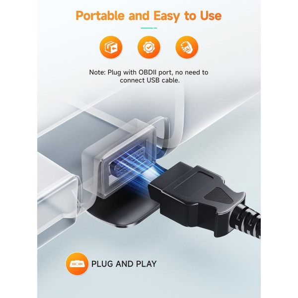 - Potente compatibilidad: funciona en la mayoría de vehículos vendidos en los Estados Unidos con modelos de año 1996 o más recientes; soporta todos los protocolos OBDII: KWP2000, ISO9141, J1850 VPW, J1850 PWM, y CAN (red de área de controlador); funciona con inglés, alemán, francés, español, finlandés, holandés, ruso y portugués; no requiere batería ni cargador. Obtiene energía directamente desde el conector de enlace de datos OBDII en tu vehículo.