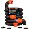 - Kit completo de manguera de drenaje de RV: incluye (2) mangueras de alcantarillado RhinoFLEX de 10 pies con accesorios prefijados, (1) codo transparente con 4 en 1 y (4) tapas de alcantarillado RV para almacenamiento. Los accesorios giran 360° para una fácil conexión y el codo transparente muestra cuando el tanque está vacío.