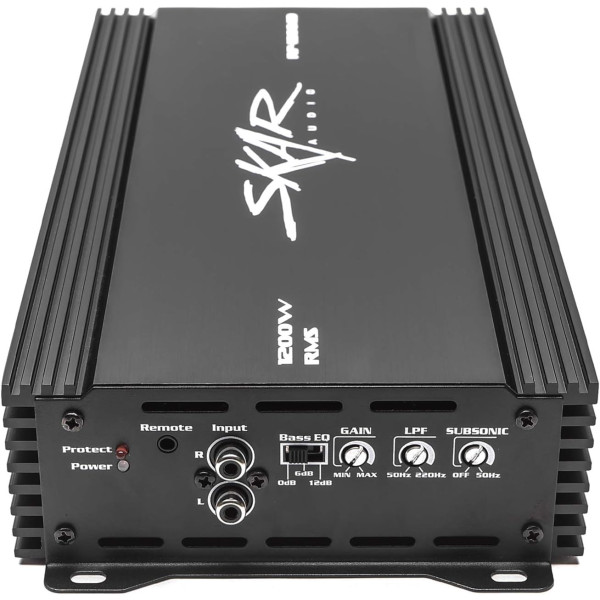 Skar Audio - Amplificador RP-1200.1D Monoblock Clase D MOSFET con control remoto de nivel de subwoofer, 1200 W