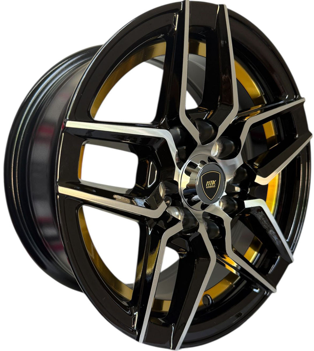 KMX / Juego De Rines 13X6.0 Negro Maquinado Con Línea Dorada Decorativa
