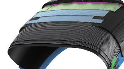 El hombro de la banda de rodadura interconectado mejora su durabilidad para una mayor precisión en las curvas y un mejor manejo.